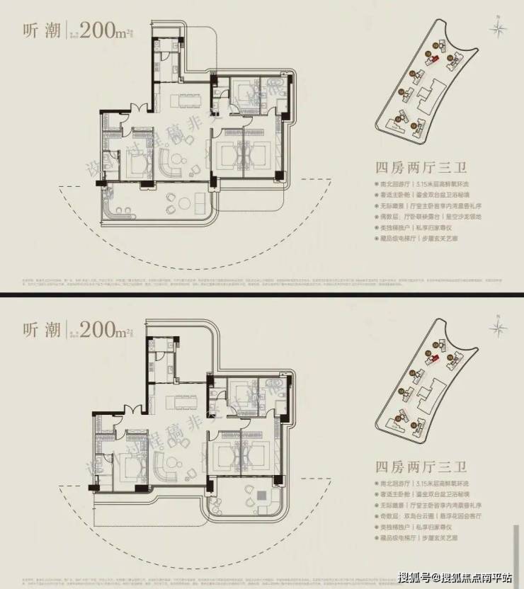 该户型还拥有3.3米满级层高,收获更多的采光、更高的视野面、更清爽的通风。尊贵入户礼序从独立电梯厅中走出,推开家门,是尊崇的归家动线:奢石装点的玄关、环抱式的双侧衣帽鞋区。海景待客餐厅餐厅直面海景,在宴会级大圆桌上与海景共餐;岛台和酒品藏柜,在家中就能拥有海景吧台。奢华主卧可改全套卧,可将南次卧与旁边的衣帽间打通,解锁全套卧体验。此外,该户型还配备了三梯两户,双入户,独立保姆房,顶级豪宅才能拥有的奢阔配置,归家梯与服务梯分离,私密性拉满的同时,电梯效率也达到极致。-具体更多详情,拨打售楼热线:☎️☎️400-159-8559转接7788【售楼中心】
