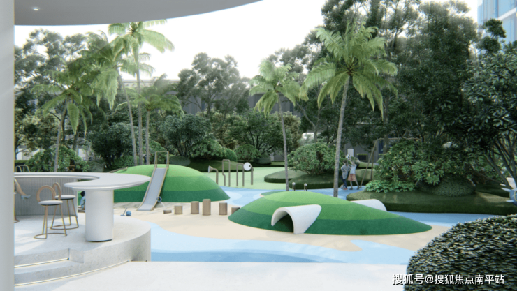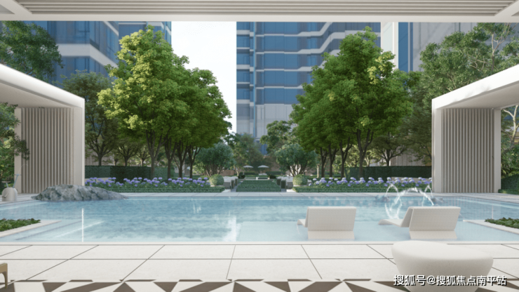 庭院面积高达8000㎡,覆盖了家庭全年龄段成员的生活娱乐场景,会客厅、戏水池、健身、书吧、会客空间、儿童乐园、阳光休闲平台