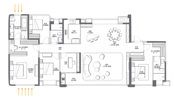 墅级空间设计理念,在平层之内构造出类墅的生活方式。双主卧分布户型两端,照顾多代人起居。极致的户型设计,使得在五缘湾一步到位的置业需求,被完美锁定。