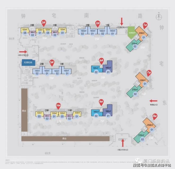 楼栋距离平均约50-60m不等保证采光, 高得房。公摊16~22%,98、123平两梯3户,其余都是两梯2户。豪宅属性,圈层比较纯粹,适合高端改善型客户群体。