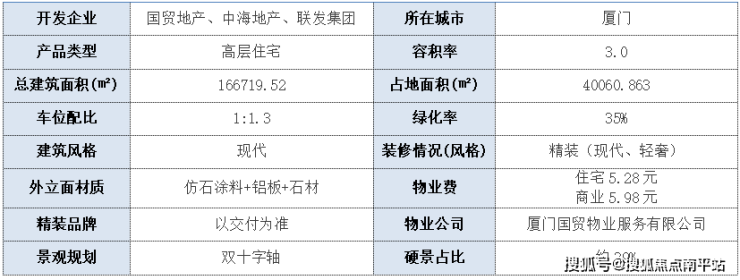 国贸地产联合中海地产、联发集团共同开发,紧邻国贸天琴湾,东南面更享有270度湾海双景。项目位于五缘湾,该片区是厦门岛内唯一集水景、温泉、植被、湿地、海湾等多种自然资源要素于一体的生态空间,优美的自然生态环境将其造就为鹭岛宜居度最高的人居板块之一,除此之外,片区内教育、医疗、商业、交通等各项配套皆十分齐全。