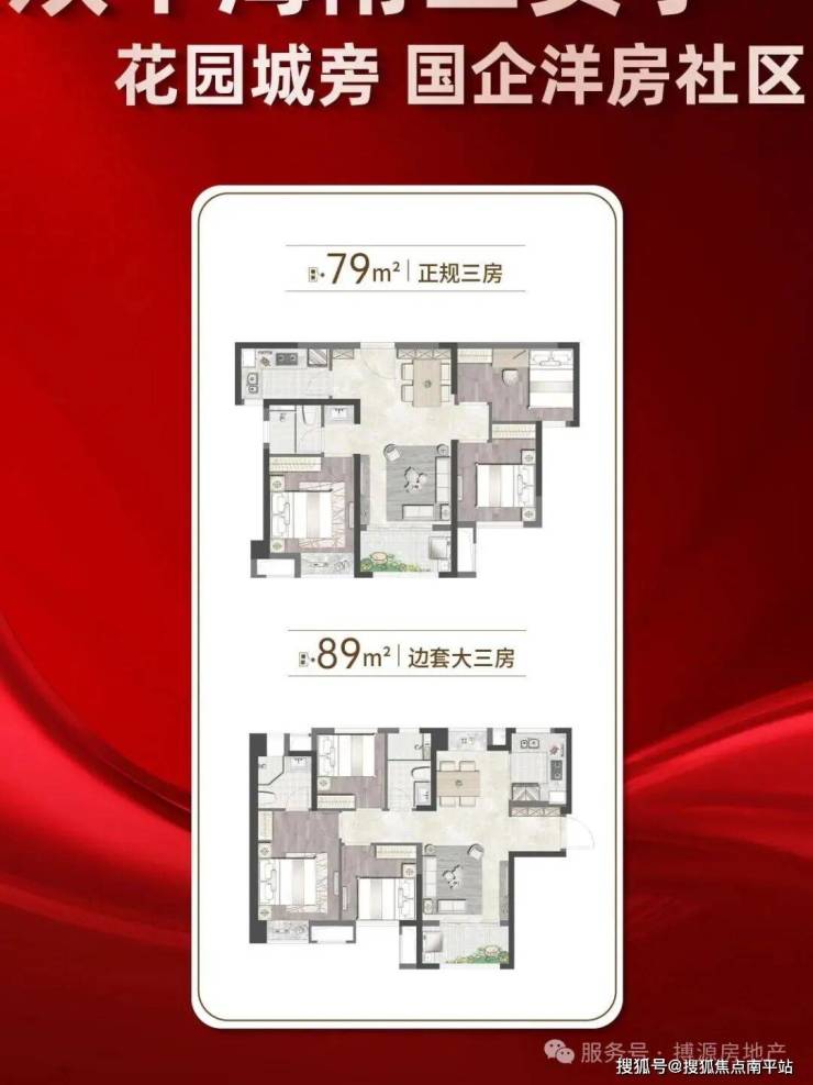 高层: 79-89㎡ 三房,总价约 150-214万