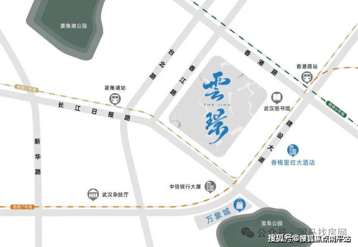 武汉城建中央雲璟周边几乎都是被地铁环绕了,项目距离3、6、7号地铁换乘站香港路站直线距离约400多米,距离3号线菱角湖站最近,约100多米,其次是7号线取水楼站,约300多米,都是步行距离。