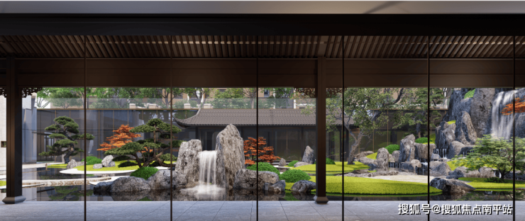 “第一尺度园林”-营造 47m*22m 上千平规模架空层庭院景观,足不出户便可观赏中式园林。