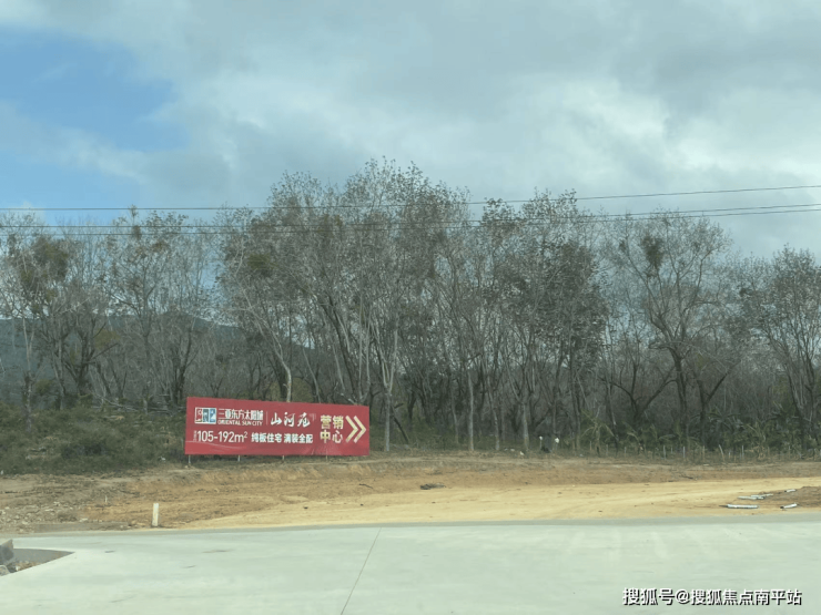 项目入口处路牌清晰写着:三亚东方太阳城,市政道路工程。