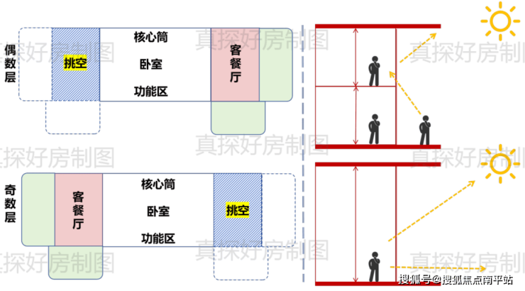 这个户型是1、2#楼的主力户型,户型最大的优点就是露台的设计,奇偶层的露台朝向不同,规避了一期露台私密性的问题。