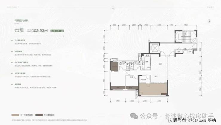 建面约102.23㎡ 2+1室 / 2厅 / 2卫