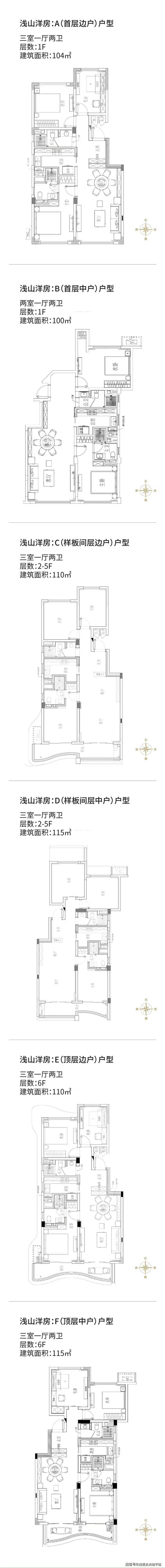 100㎡ 两室两卫 | 104㎡-115㎡三室两卫
