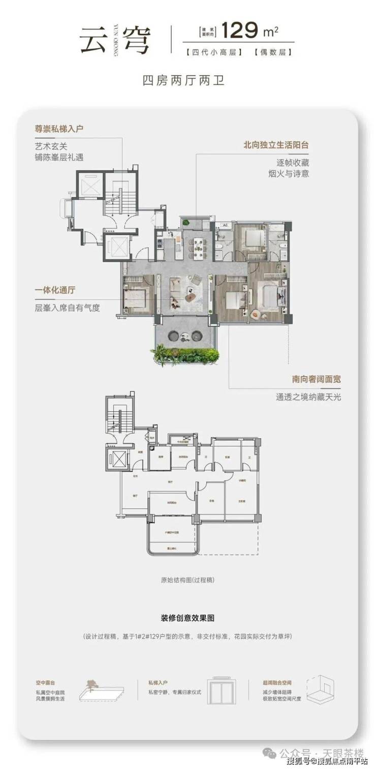 全系都是舒适级四房、南北通透大横厅、三卧室朝南户型, 连约129㎡户型的所有房间都能放得下一张床+2个床头柜+1衣柜,仅这点就很樾级了。全系带 独立入户光厅和270°奢阔空中大露台,各种院墅级生活场景随心打造。