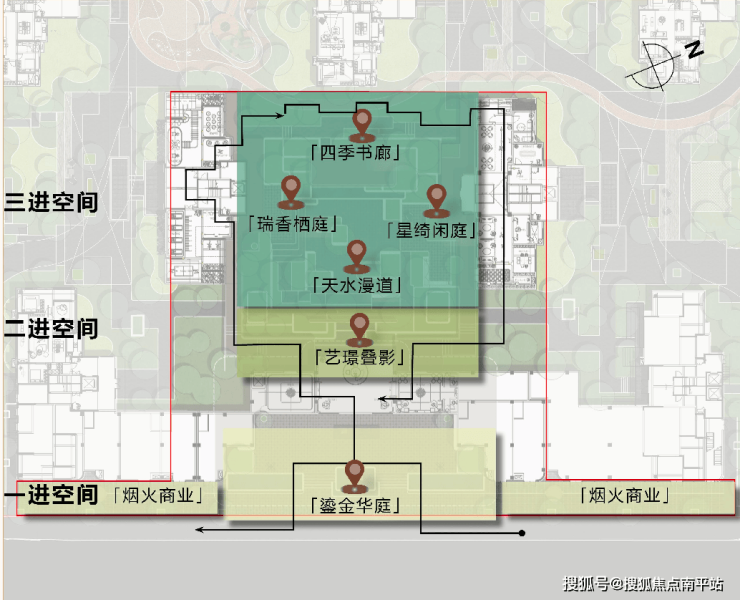 园林以“三进九景”为序,融合南昌在地文化与海派美学风格,打造步移景异、归家即入画的体验,让生活与自然、礼序与诗意在此交融。