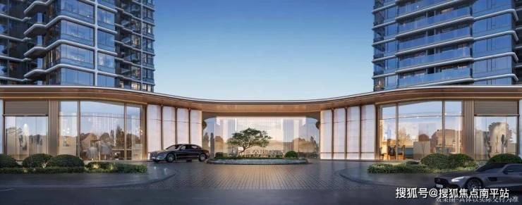 ◎长达约120米弧形主入口界面,城市级封面门庭,集萃名贵奢石臻造,铺陈都会风华,礼遇当代门庭,呈现繁华CBD里的曼妙意境。