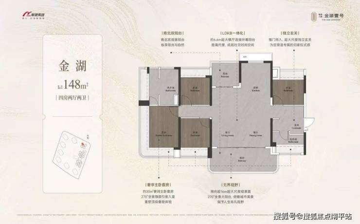 🔺148㎡ 四房东南向,总价506-550万,均价3.3-3.9万/平