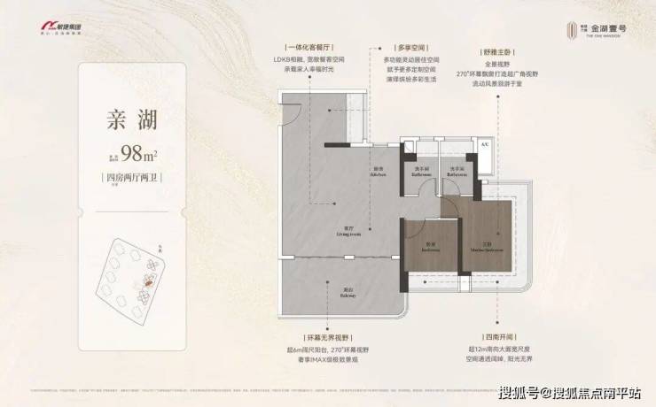 · 环幕双景阳台,约5.8m阔尺阳台,270°环幕视野
