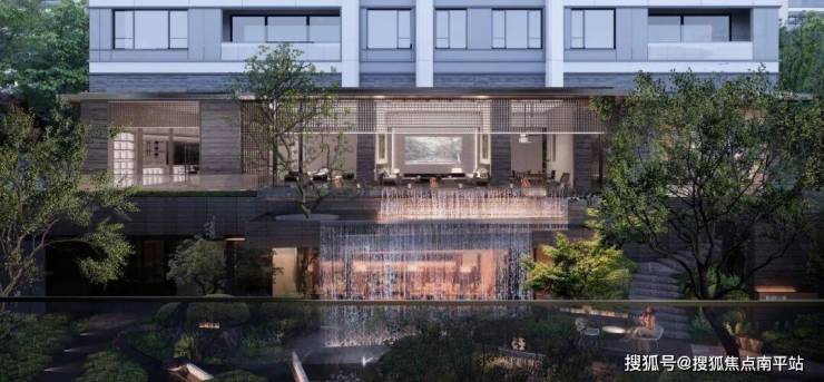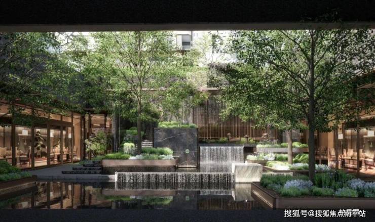 项目塑造别样自然基底的归家入口,由开放纷扰过渡到静谧精致,悠享人文归家路;社区园林通过曲水、寻园、望亭、观澜等元素,打造曲水绕园、围水庭院的立体山水空间,突破视野界限,勾勒以水景为基底的游赏庭院,叠水流瀑,营造隐贵的自然生活画卷,建立城市与自然之间的平衡。