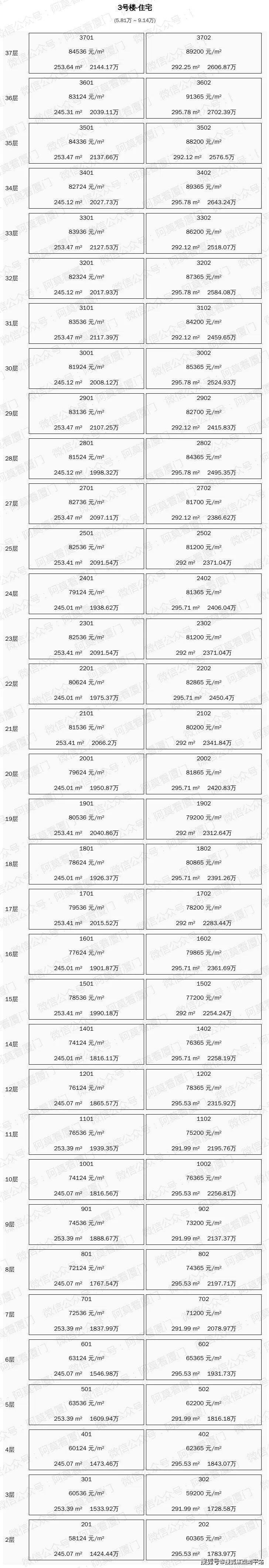 一房一价表(看厦门制图)