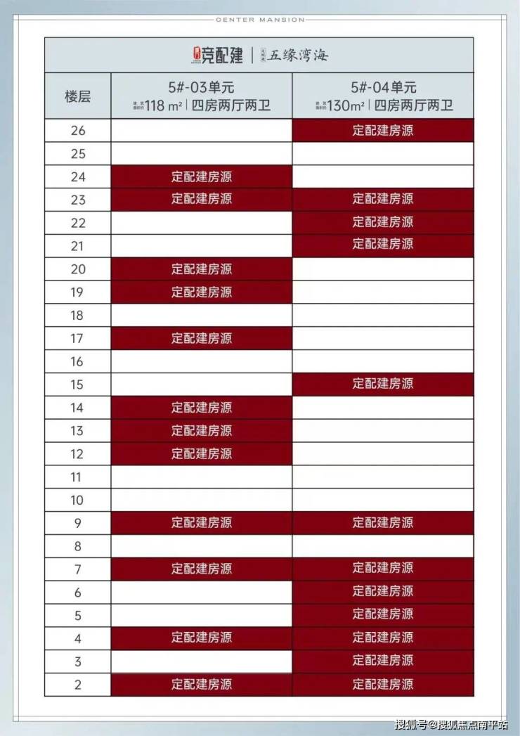 五缘湾海地块当初采用“限房价、限地价、定配建、定品质+摇号”方式拍卖出让,其中5号楼有24套定配建现房,建面约118平和130平各12套,和已售现房品质一样。