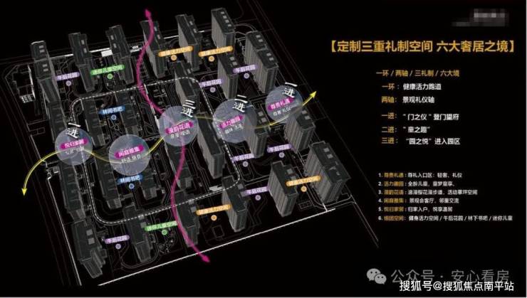 项目专门打造了一环、二轴、三进三礼,形成定制三重礼制空间六大奢居之境,本着以人为本的设计理念,营造一种宁静雅致的体验感观,尽享尊贵大气。