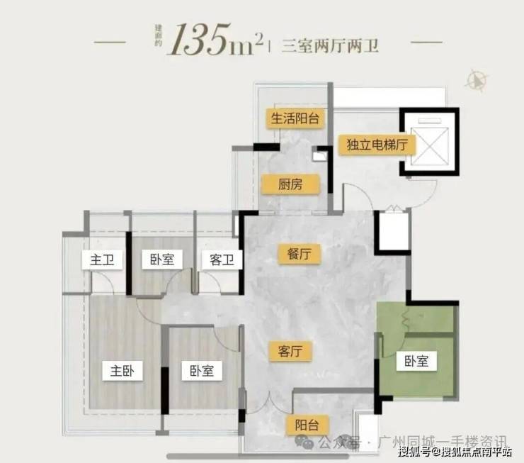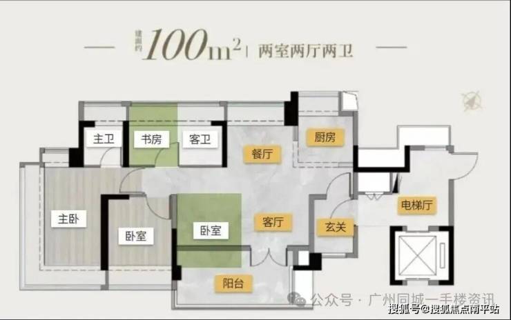 塔楼01东边位:90㎡竖厅三房,东南向