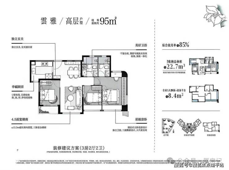 •95㎡高层为4.5开间朝南,空间感媲美传统109㎡户型