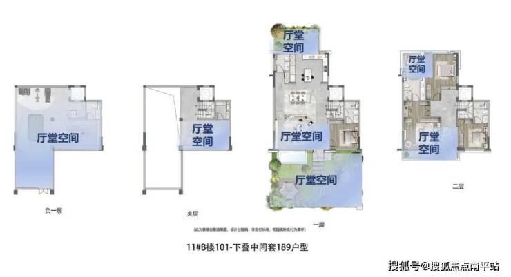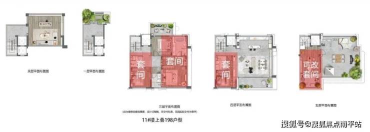 第四排起:终极院墅12栋4层叠墅,198-201平上叠、188-190平下叠,创新一梯一户设计。
