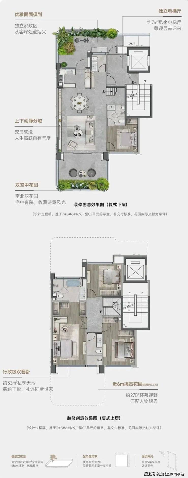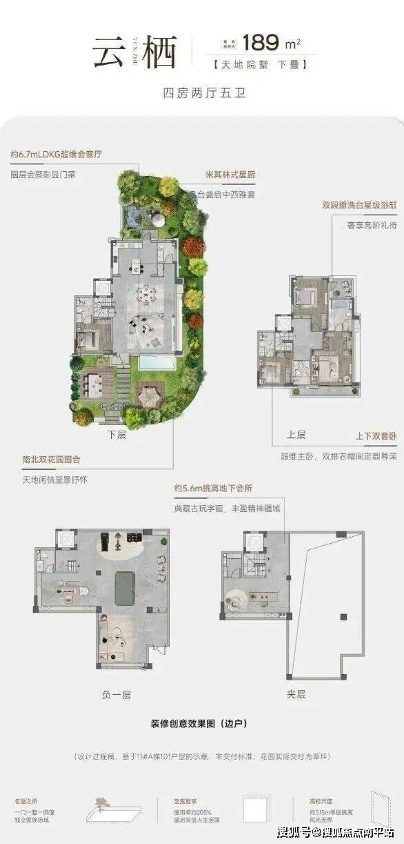 下叠约5.6m挑高地下会所,可打造双层功能区,搭配夹层设计,空间利用率翻倍;一层设置约60-80㎡院子(具体以每户实际面积以及实际交付为准),实现“室内外双生活场景”;