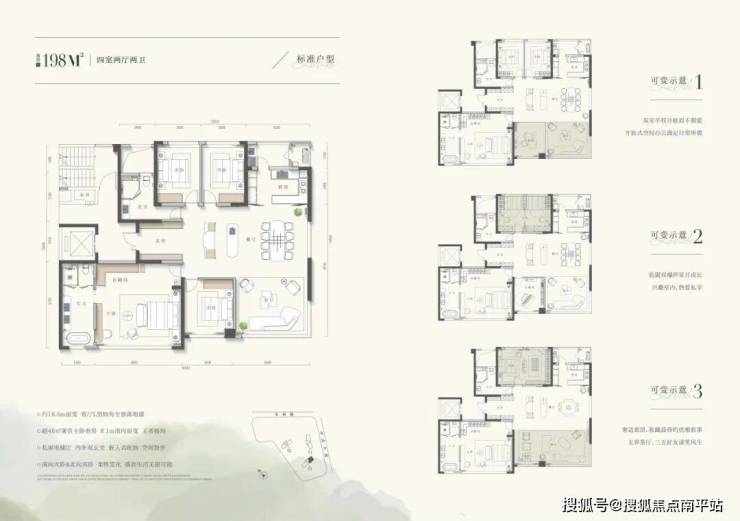 同时, 建面约146-198㎡产品创新采用“钢板剪力墙”柔性结构,墙体可自由拆改,提供两房到四房的多种定制化方案,供不同人生阶段的业主挑选。
