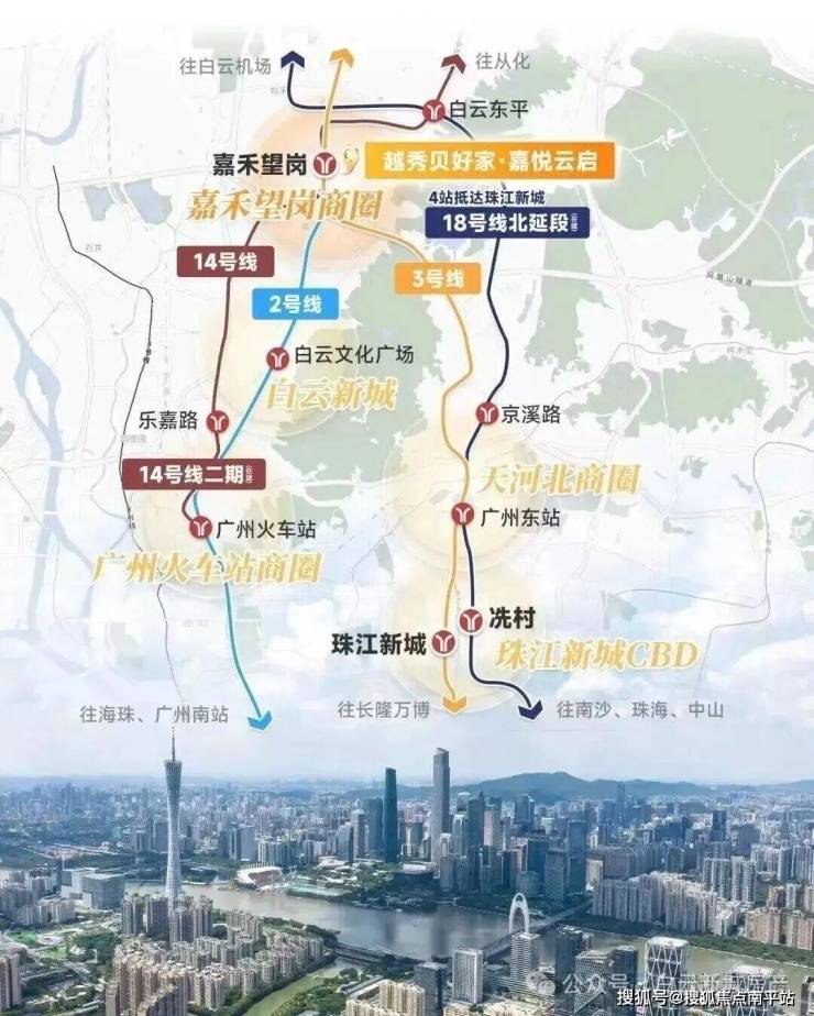 项目最大的优势之一就是真地铁上盖,楼下就是 2 号线、3 号线和在建 14 号线二期的交汇站 —— 嘉禾望岗站,与地铁无缝衔接,轻松通达广州各大核心区域。