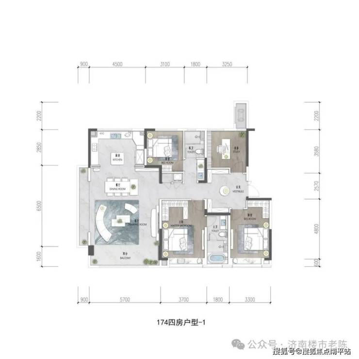主力户型:建面约127-174㎡全四房