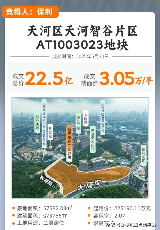 2025年5月30日保利拿下航天奇观二期地块,总价约22.5亿,楼面价3.05万/平!(未扣除配建,按总建面计算)
