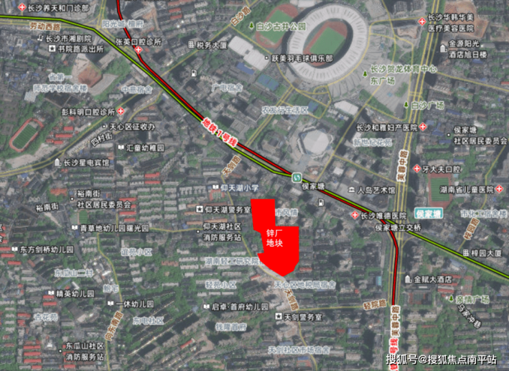 湖南省儿童医院和长沙市三医院距离地块均只有五六百米