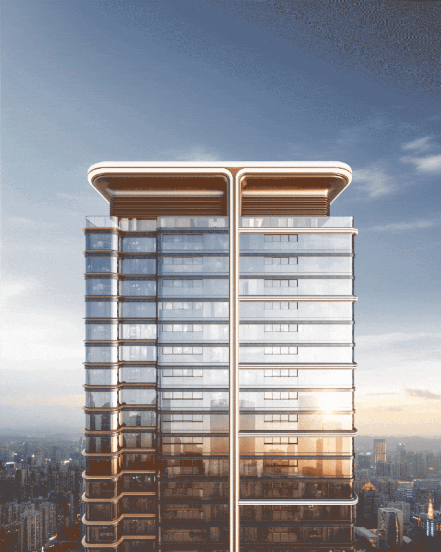 保利玥玺湾由gad杰地设计负责操刀,项目建筑立面设计首创广州珠江全弧形设计的“湾流立面”,采用 “定制弧形玻璃 + 进口铝材 + 高端陶板” 的单元式幕墙。