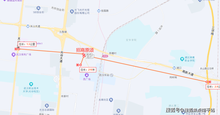 项目与关山大道保利时代广场、光谷K11直线距离约1.2公里,与光谷天地直线距离约1.7公里,位于商圈辐射范围内,与国创汇山姆会员店直线距离约2公里。