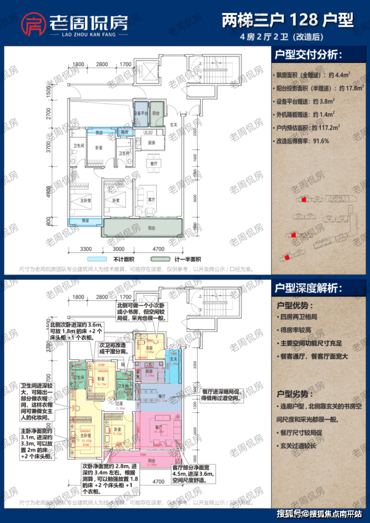 ①门槛户型128㎡的四房,在小区的占比约30%: