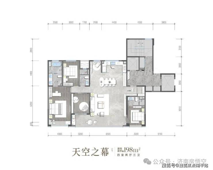198㎡户型,单价24500-25500,总价485-500万左右;