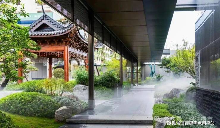 「鲤悦」的出圈,首先源于对湘派园林美学的深度复刻与创新。项目以岳麓书院千年文脉为魂,打造可游可居、可读可感的三维园林,每一处设计都藏着对湖湘文化的敬意。主门楼以高门大户之姿矗立,长约140米、宽约60米、挑高约8.4米,搭配40.3米飞檐,尽显世家风骨;两侧黄铜甪端静守,源自《山海经》的皇家灵兽,为家宅守护祥瑞。步入园内,九尾锦鲤景墙灵动鲜活,取意清宫《鲤跃龙门图》,寓意福运圆满;蜿蜒的“山水游廊”串联四季景致,步移景异间如入诗画。