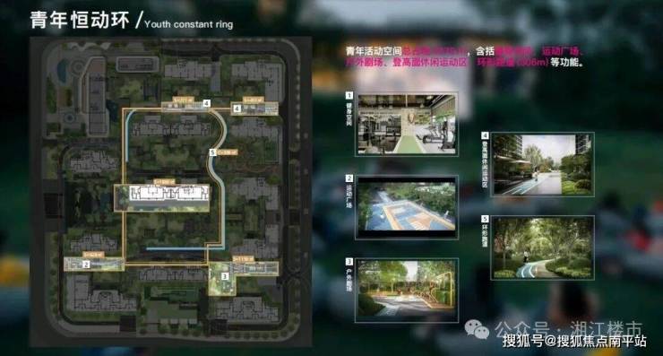 对于年轻人,“青年恒动环”是活力主场,306米环形跑道、力量训练区、户外剧场、景观会客厅等设施,满足运动、社交、休憩的多元需求;而“夜间暖心环”则通过无影灭蚊系统、夜光跑道、智慧灯光系统等配置,让社区夜间如白昼般安全温馨,无论是夜跑还是饭后散步,都能倍感安心。此外,项目重塑传统登高面,运动主题区用明快色块与专业设施激活活力,休闲社交角搭配可移动花箱与舒适座凳,成为邻里闲谈畅聚的温馨角落。