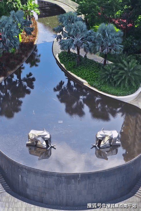 午后会有孩子光着脚踩在手工铺设的鹅卵石上,感受水流漫过脚踝的清凉。每一块鹅卵石都经过景观团队的精心挑选和手工排布,从圆润度到色泽搭配都暗藏巧思,当阳光穿过树叶的缝隙洒在水面上,波光与石影交织出一片流动的碎金。