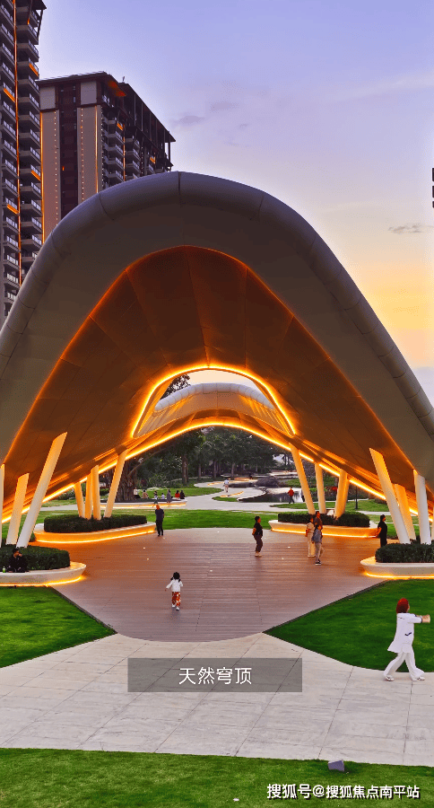 沿着水系往前,一棵需要 6 人才能环抱的百年菩提树猝不及防地撞进视野里,这是悦菩提最珍贵的精神坐标,也是社区名字的由来。作为整个园林的视觉中心,这棵树不仅见证了时光的流转,更承担着业主的情感联结 —— 清晨有老人在树下打太极,午后是孩子们的躲猫猫乐园,到了傍晚则变成邻里间的社交场。为了保护这棵古树的根系,景观团队特意抬高了周边的地面,用一圈水磨石坐凳将树体牢牢地包裹起来,既方便业主休憩,也最大限度地减少了人为活动对古树的影响。盛夏时节坐在树下,抬头是遮天蔽日的浓荫,鼻尖萦绕着菩提叶特有的清香,偶尔有风吹过,细碎的阳光透过叶隙洒在脸上,连时光都跟着慢了下来。
