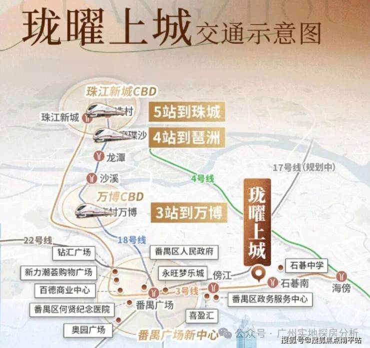 项目距离地铁3号线东延段石碁南站约600米,通过3号线可直达珠江新城、万博CBD等核心商圈,无缝对接18号线、22号线,半小时内可达市中心,一小时畅行粤港澳大湾区。