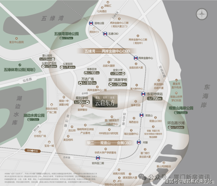 配套:紧邻万达-银泰、K11(在建中)等商圈,近地铁2号线(直线距离东宅站约700米),约2公里范围内拥揽弘爱医院、厦心医院等医疗,毗邻五缘湾湿地公园、湖边水库公园、观音山海岸公园等休闲。