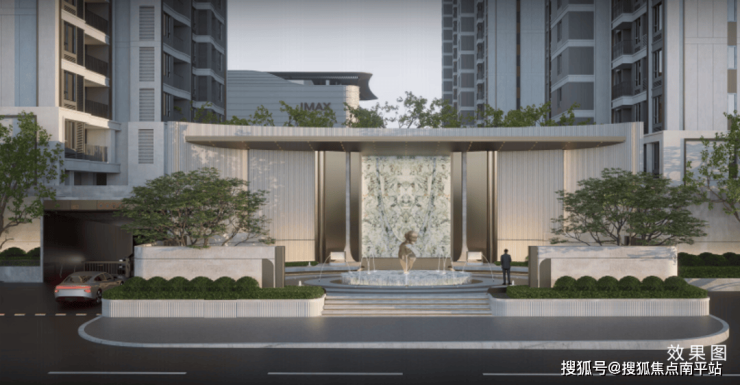 【六进·归家艺境】打造酒店式+递进式归家情境,以[礼仪门庭 - 入口庭院 - 漂浮水院 - 摩登会客厅 - 元气森林 - 林荫漫步]六进风光长廊贯穿社区,落客前场设计灵感源自大师 Jean-Michel Gathy ,打造曼谷四季酒店隐奢式氛围感,归家庭院再现新加坡爱马仕公寓无雨归家系统。