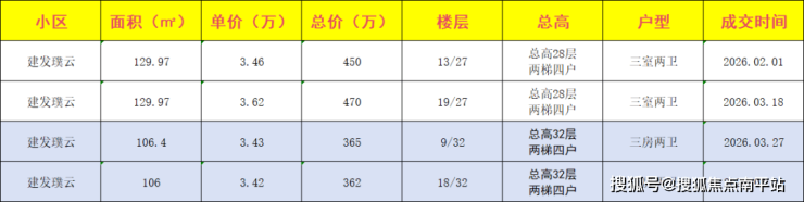 其次我们再来综合看下这四套成交房源的楼栋信息,都在小区的中间楼栋,3栋和12栋,不知道是不是巧了,内部楼栋业主心态相对更诚心点呢,还是客户就看上内侧楼栋而进行沟通产生的价格变化,不过对于其他楼栋的价格后期可不是一个好消息,特别是靠近数字大道的楼栋,因为建发的溢价本身就在园林,当时在卖新房时候小区内部楼栋价格就是贵的,所以外围楼栋后期单价能不能卖过超3.4万呢?