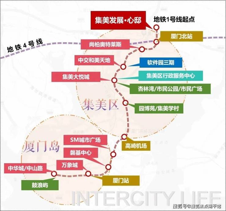 地铁1号线纵贯南北,集美新城发展沿着城际中轴线加速崛起,以产、城、学、人的高度融合,走在发展前沿,以 全方位的生活尊享,成就厦门人居坐标。