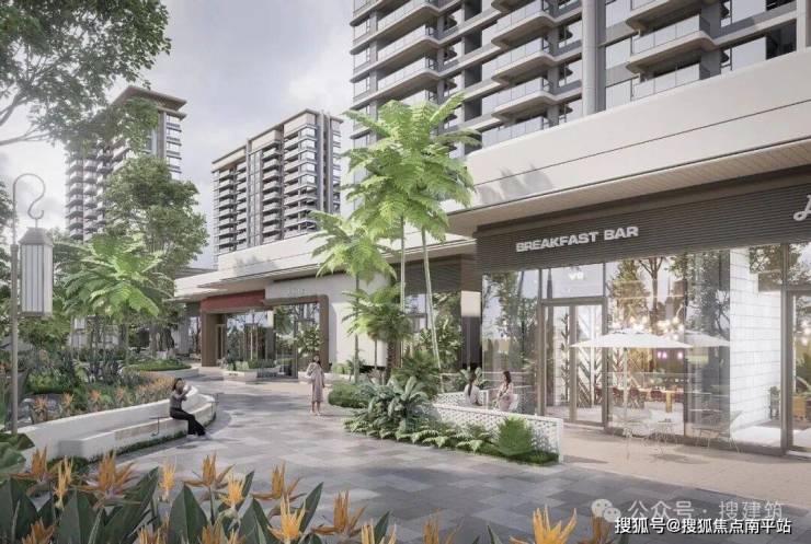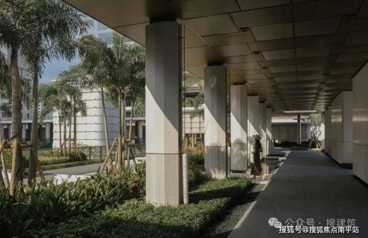 项目在空间结构上采用严谨的四进庭院体系,从前场落客区、归心长廊、中庭花园到归家序曲,层层递进,形成完整而富有节奏的归家动线。这一全面迭代的空间序列设计,突破了传统度假社区的单一功能布局,创造了多层次的感官体验。鉴于其位于保利海棠湾板块的核心位置,方案在纵向轴线基础上,横向延伸出街区商业空间,与前场落客区自然衔接。这种纵横交融的布局模式,标志着度假社区从单纯居住功能向复合生活场景的系统性转变,体现了全系迭代的产品理念。