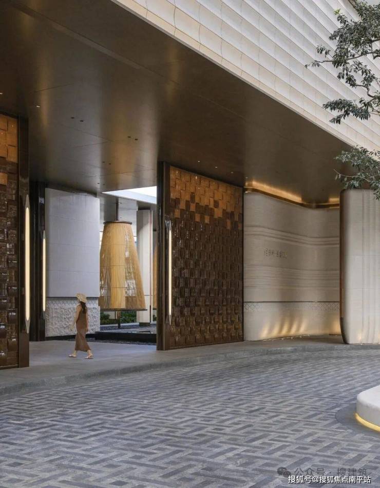 项目细部处理融入多项在地文化元素:入口大门采用大地色艺术陶瓷拼贴;门把手以珐琅彩工艺呈现"鹿回头"千年传说;归心长廊的鱼篓型灯笼采用仿竹编工艺。这些元素虽不张扬,却在不经意间唤起人们对本土文化的记忆与共鸣。
