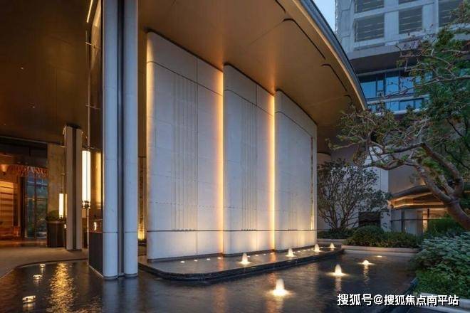 归家的仪式感,从隐奢门庭的前场徐徐开启。长约50米的扇形雨棚如华盖般舒展。六扇叠层石材屏风与十二道景屏静立于叠级水景之上,如翼伸展,环抱相迎,共同围合出一方归家前的灰空间。这里,是抵达宁静的过渡庭院,也是归途中的心灵栖所。✨招商序来电咨询☎️☎️400-159-8559转接7777【☎营销部电话已认证】