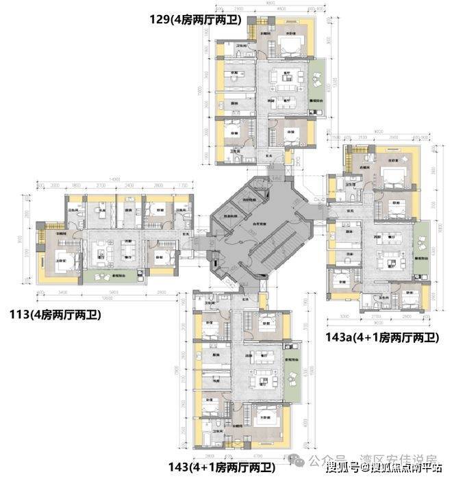 瞰山T4高层:建面约115-143㎡四房到五房