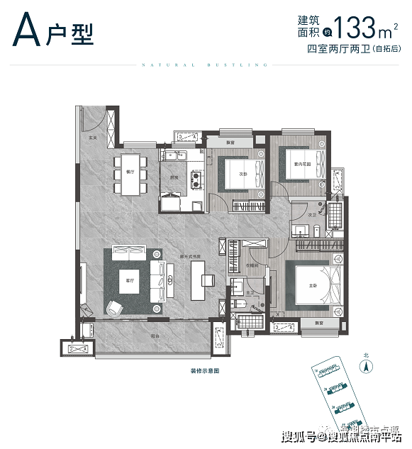 全能四房布局,户型方正,全明通透,餐客连厅设计;主卧套房,配设独立卫浴,舒适又不失生活的私密;轩敞景观阳台,尽揽旖旎美景