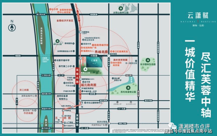 项目周边有周南秀峰小学、周南中学、清水塘实验小学、长师附属创远小学、长郡开福中学众多学府相伴。居于此,享尽一城繁华精粹,与城市人文共涵养