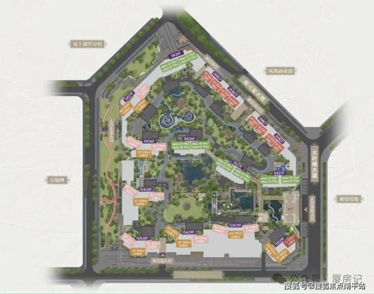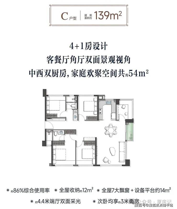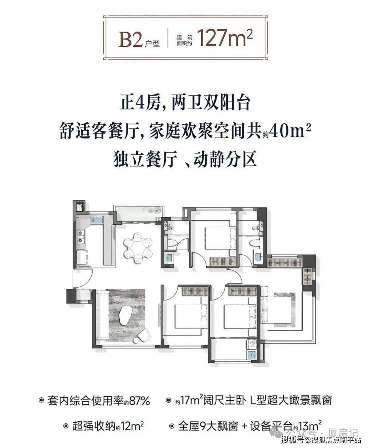•为“高层+四代宅”组合,全系是100㎡以上纯改善型住宅,户型涵盖建面约104 - 179㎡的四房;